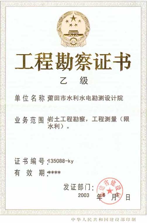 >> 工程勘察、測(cè)量乙級(jí)資質(zhì)