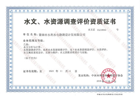 水文、水資源調(diào)查評(píng)價(jià)資質(zhì)證書